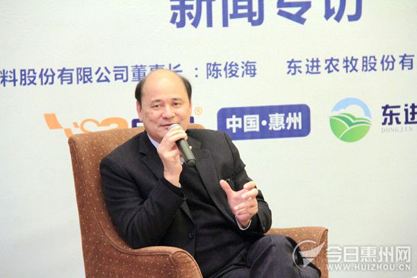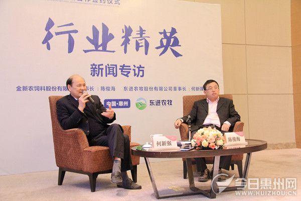 12月8日下午,乐动在线登录官网农牧董事长何新强和金新农董事长陈俊海接受媒体记者采访。